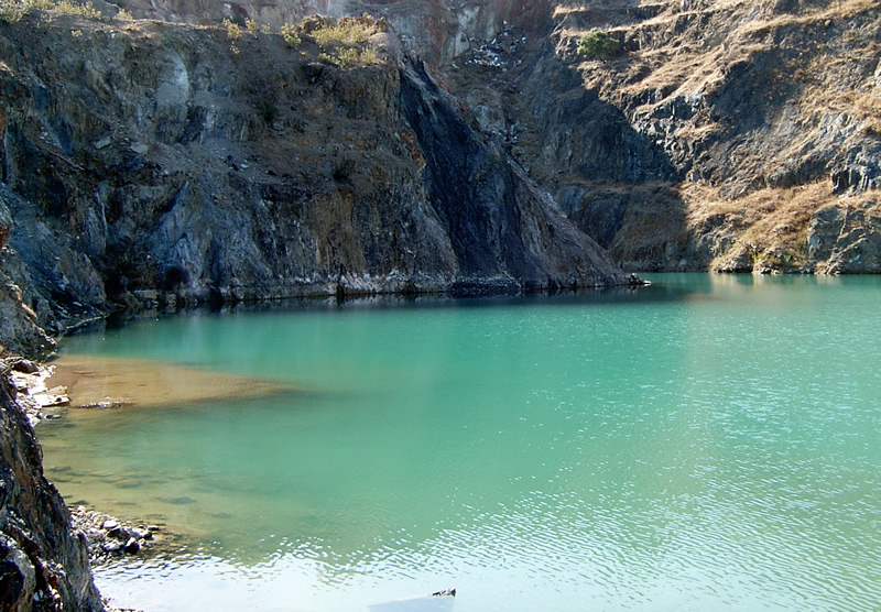 La corta de Santa Bárbara es más reciente, aunque su perfil no es menos impresionante que la del Guadiana. Esta corta se excavó para extraer mineral de cobre que, lavado y mezclado con chatarra, daba como producto cáscara de cobre. Al igual que su hermana, la corta de Santa Bárbara está cubierta en gran parte de agua, de color esmeralda en días luminosos, como consecuencia de la presencia de mineral cuproso.